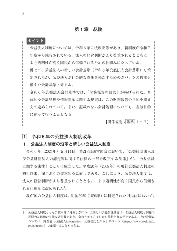 巻頭のはしがきには、2024年公益制度改革の法改正において内閣府公益認定等委員会事務局長を務めた北川修氏が、制度改革の経緯と会計基準改定への期待を寄せています。